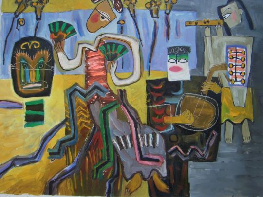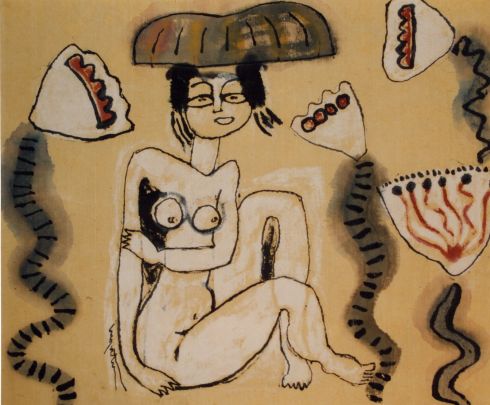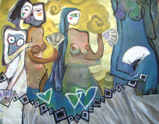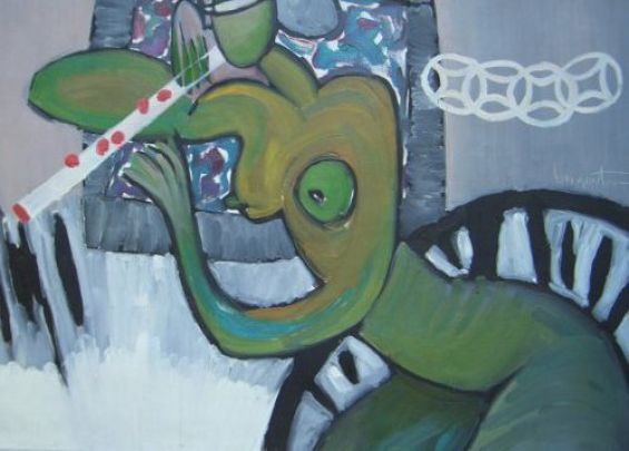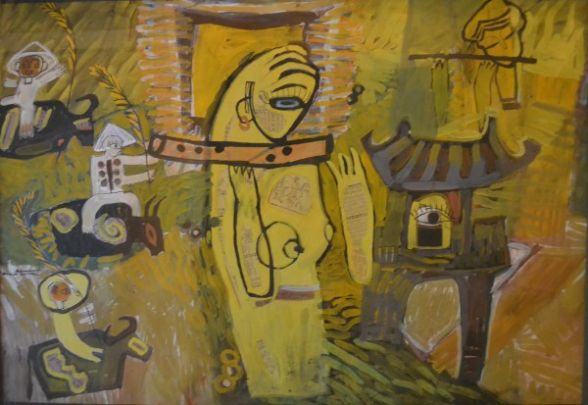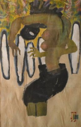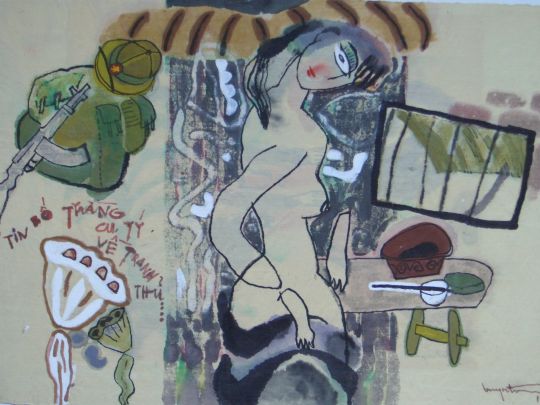 Bui Ngoc Tu graduated from Hanoi Fine Arts School in 1969. He participated in numerous exhibitions in Vietnam, Belgium, Russia, India, Poland and Sweden. This artist is well known for his paintings describing the traditional life of country people. He gives to his characters a touch of naivety and tenderness that is moving and poetic. His paintings often portray a simple-complex dynamic in the Man-Woman relationship. He depicts his women as desired beings who are fully aware of being objectified. In contrast, men are reduced to lower forms on par with children and clowns, yet gradually matures into a more sexualized, thoughtful entity. Bui aims to create a universal language by which to evoke the inexpressible anxiety of Man confronted by Woman.