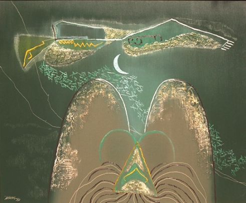 He likes to incorporate lots of symbols in his paintings. The two paintings he proposed for the H&S contest at the Fine Art Museum in Ho Chi Minh City in 1997 were censored 2 days after the beginning of the exhibition.